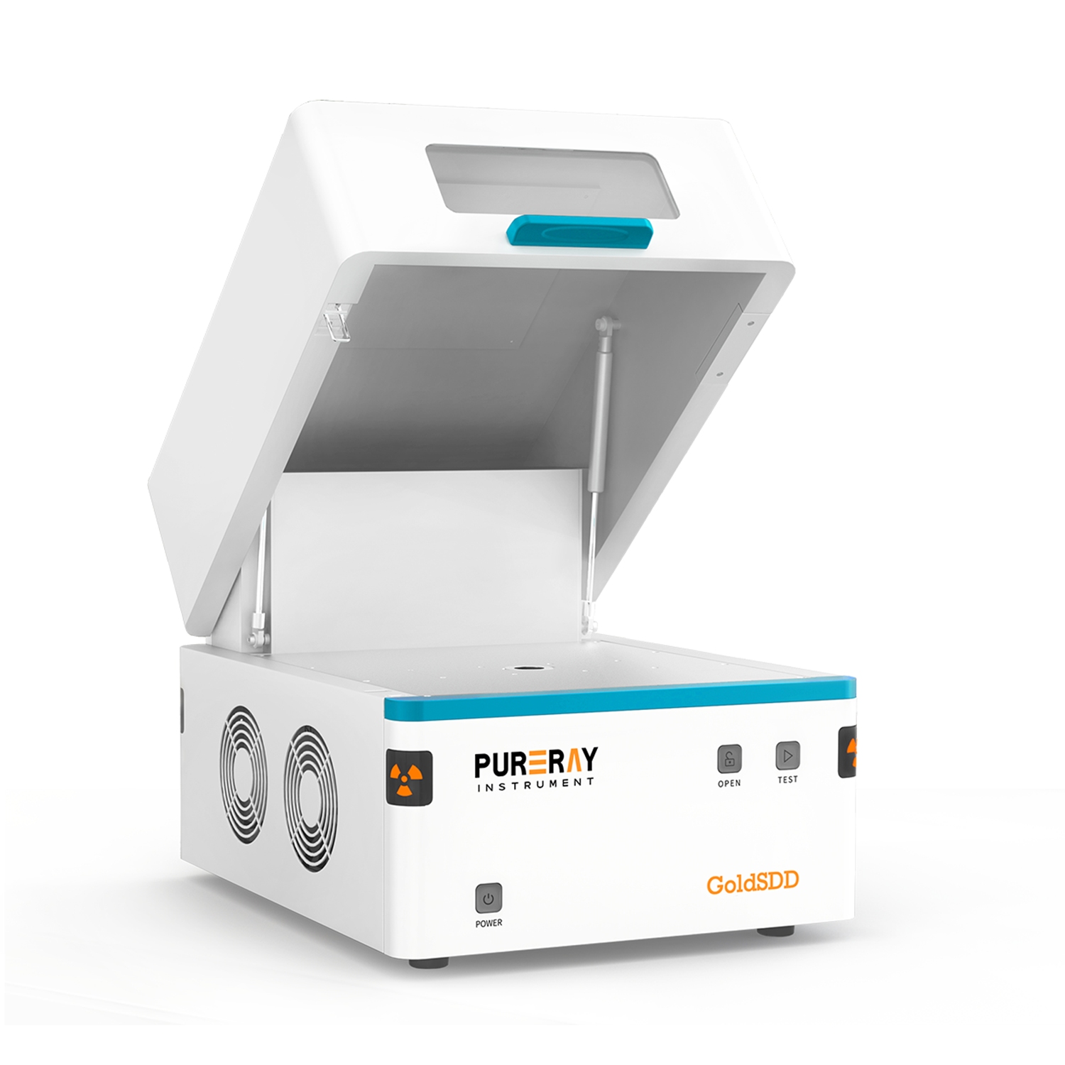 GoldSDD is a high-end X-ray fluorescence spectrometer launched by PURERAY Instrument with an upgraded optical path. It can be widely used in precious metal, electroplating industry, gemstone and other industries. The instrument adopts a USA AMPTEK customized Fast-SDD detector, an embedded computer with a 12-core CPU and the Smart FP algorithm. Besides, it applies the creative vertical optical path to obtain a smaller real focus. It can fast and accurately analyze precious metals, gemstones, coatings and ion concentrations.